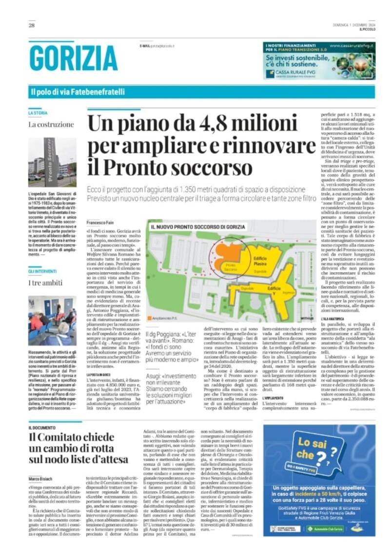 Accogliamo con piacere la notizia del progetto di potenziamento e ampliamento del Pronto soccorso ma non va dimenticato che il problema grave del sovraffollamento delle strutture di questo tipo sta essenzialmente nel grande numero di accessi impropri che finiscono con intasare i Pronto soccorso di tutta Italia con allungamento dei tempi di attesa e stress del personale medico oltre che dei pazienti. E' dimostrato che ciò accade perché non vi è più quell'efficace filtro che era rappresentato dai medici di famiglia (i medici di medicina generale) che visitando di persona (anche a domicilio....) erano in grado di indirizzare all'ospedale solo i casi più seri. Come associazione siamo al fianco di coloro che si impegnano per valorizzare questa professione e insisteremo ancora affinché tale aspetto venga giustamente considerato. I problemi sono tanti e non si possono risolvere in tempi brevi ma siamo fiduciosi che si possa fare tesoro degli errori commessi in passato.