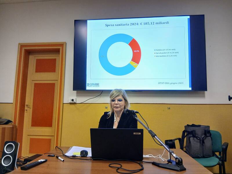Dopo un intervento di saluto (registrato) del dott. Nino Cartabellotta, Presidente di Fondazione Gimbe, Rossella Rizzatto ha presentato alcuni dati dall'ultimo rapporto Gimbe sullo stato del SSN ed in particolare sulla c.d. spesa out‑of‑pocket. Con questo termine si indica la quota di spesa sanitaria sostenuta direttamente dalle famiglie, al di fuori del Sistema Sanitario Nazionale (SSN) e delle assicurazioni private. Tale spesa è stata di 41,3 miliardi nel 2024 (22,3% della spesa sanitaria complessiva).